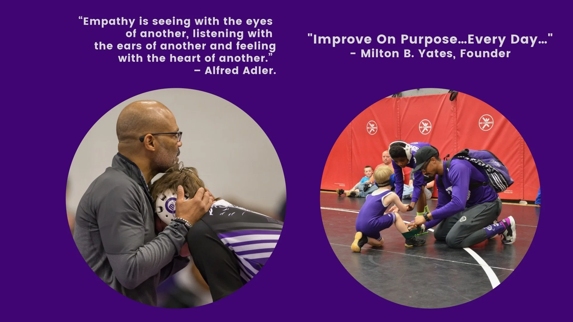 At 14 years old, Coach Milton B. Yates began his journey as competitive wrestler at Gonzaga College High School in Washington, DC. With over 125 Career Wins, Yates finished his High School campaign with 2 DC City/State Championships, 1 Washington Catholic Athletic Conference Championship, and a 4th Place finish at the 1997 National Prep School Wrestling Championships at Lehigh University in Bethlehem, PA.